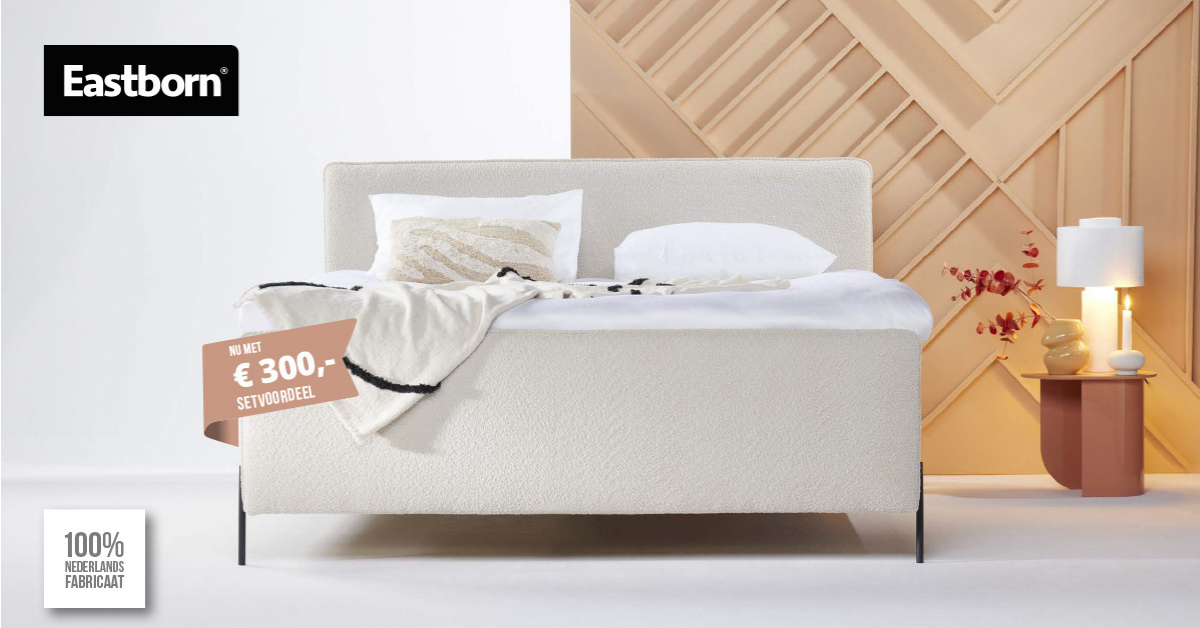 Op een complete Eastborn boxspring ontvang je nu € 300,- setvoordeel.