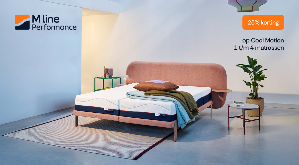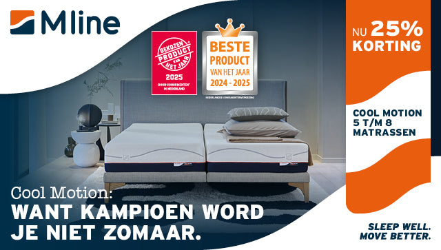 De M line Cool Motion matrassen combineren drukverlagende eigenschappen met een verkoelend effect. Traditionele matrassen met traagschuim voelen vaak warm aan doordat je er heerlijk in wegzakt. Daarom is op de bovenkant van het traagschuim een Aqua en Copper coating geplaatst. Dit neemt warmte op en geeft het weer terug als je afkoelt. Zo heb je een goed ondersteunend matras met een heerlijke slaaptemperatuur. De basis van alle matrassen komt vanuit het koudschuim in combinatie met traagschuim, maar elk matras heeft zo zijn eigen specifieke eigenschappen voor een unieke ondersteuning en ligcomfort.