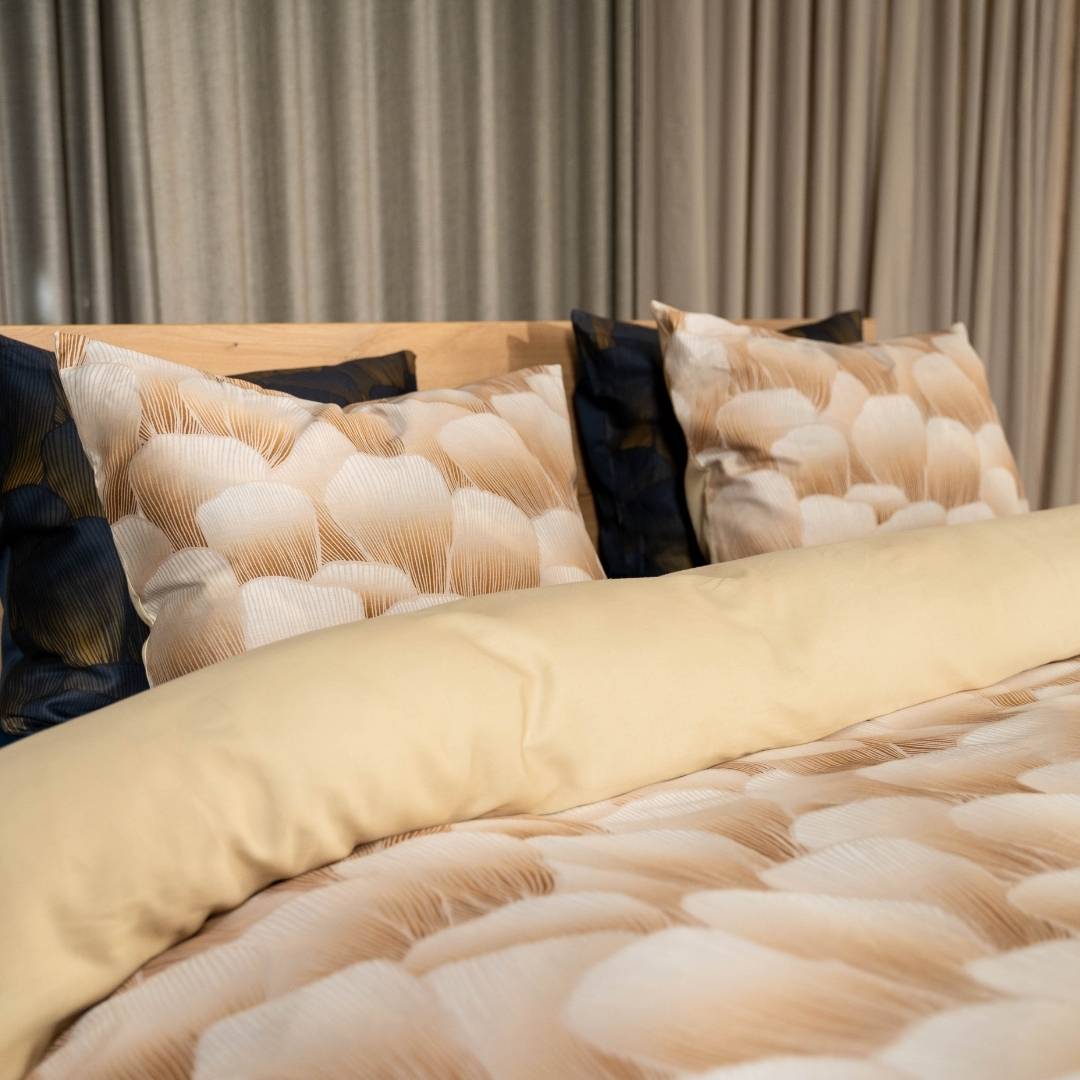Het Koji dekbedovertrek is gemaakt van een 100% katoensatijn. De katoensatijnen stof voelt zacht en soepel aan en heeft een luxe glans voor een mooie uitstraling. De ademende eigenschappen van katoen zorgen voor een fris bed en een overtrek dat past in elk seizoen.