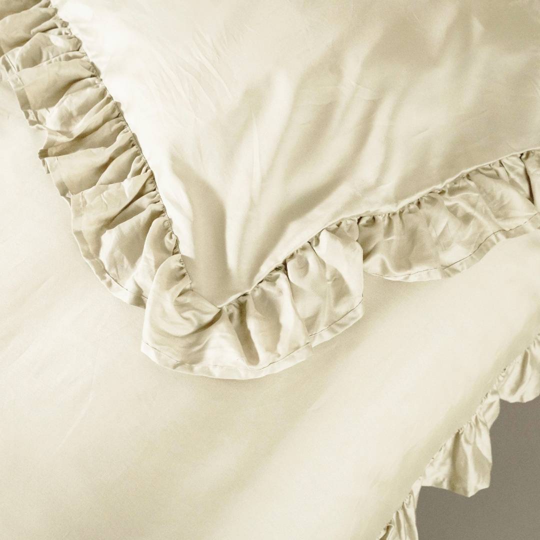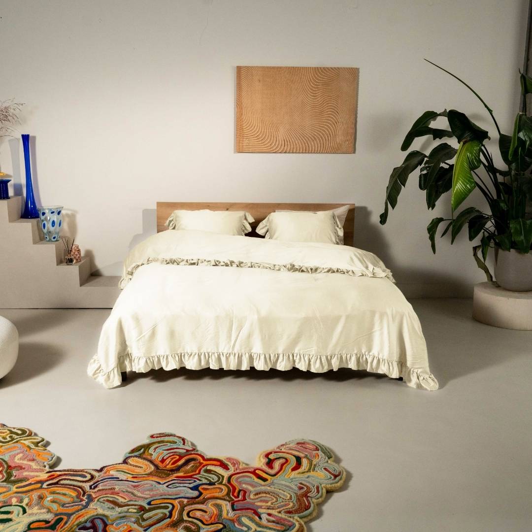 - Romantische ruffle afwerking rondom het overtrek en de kussenslopen