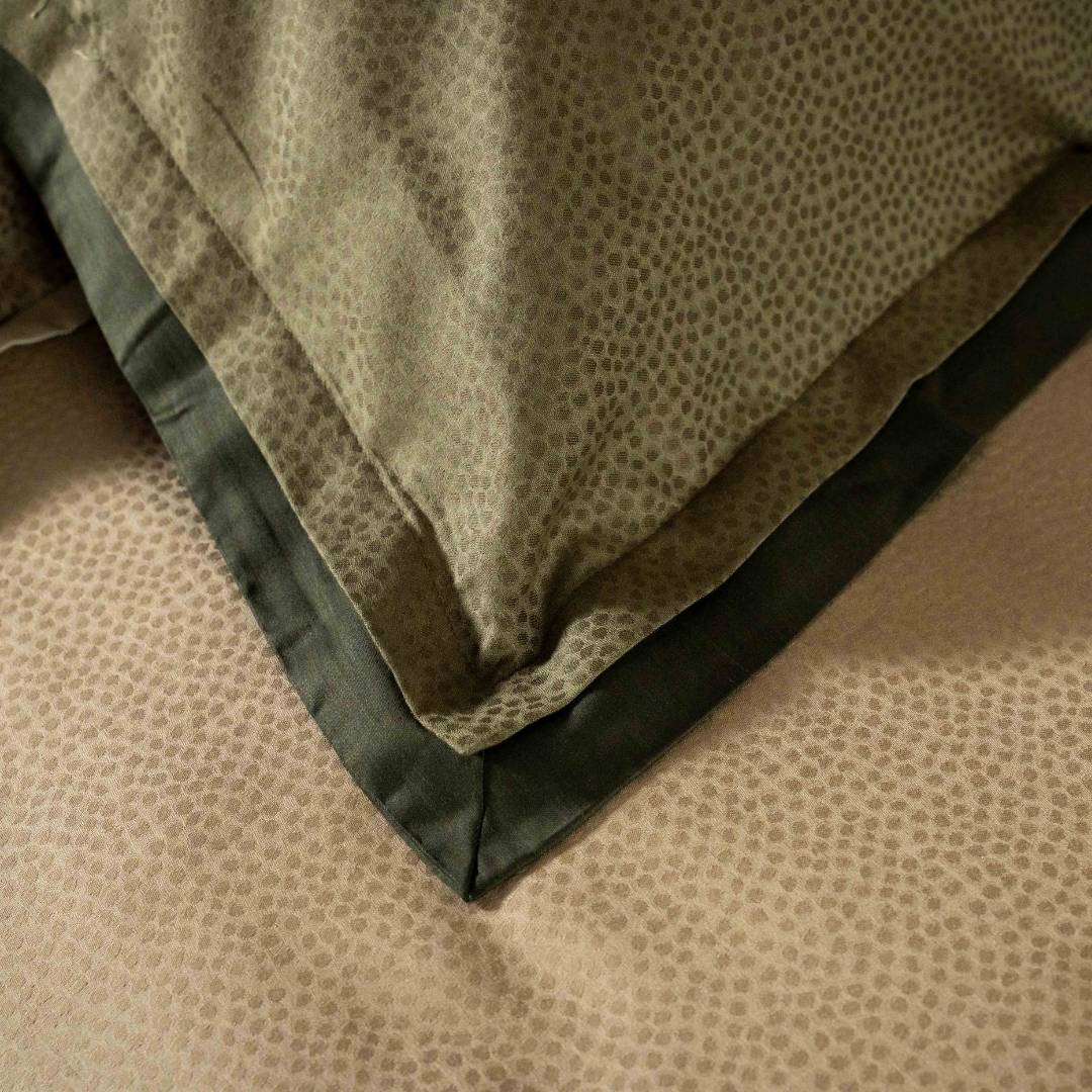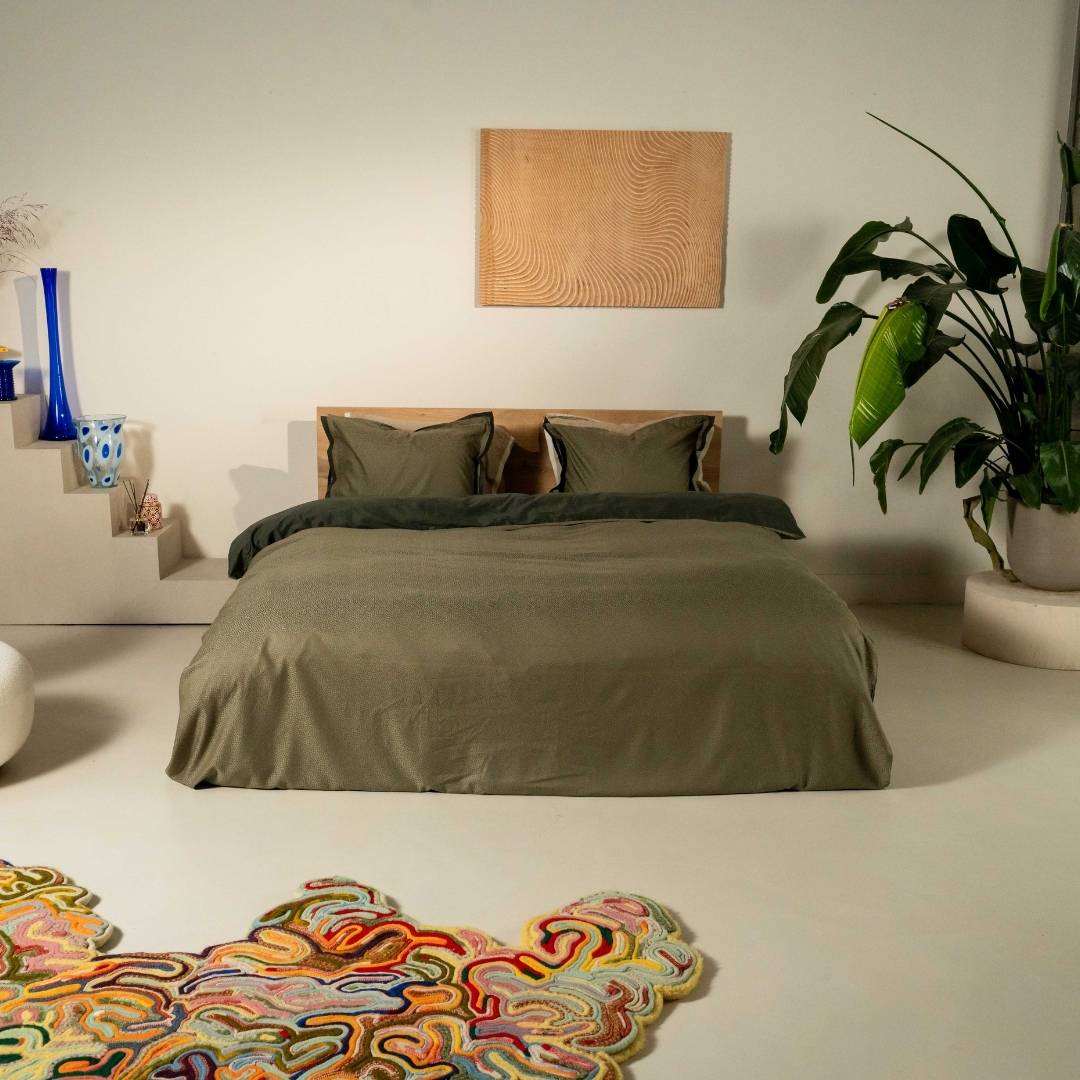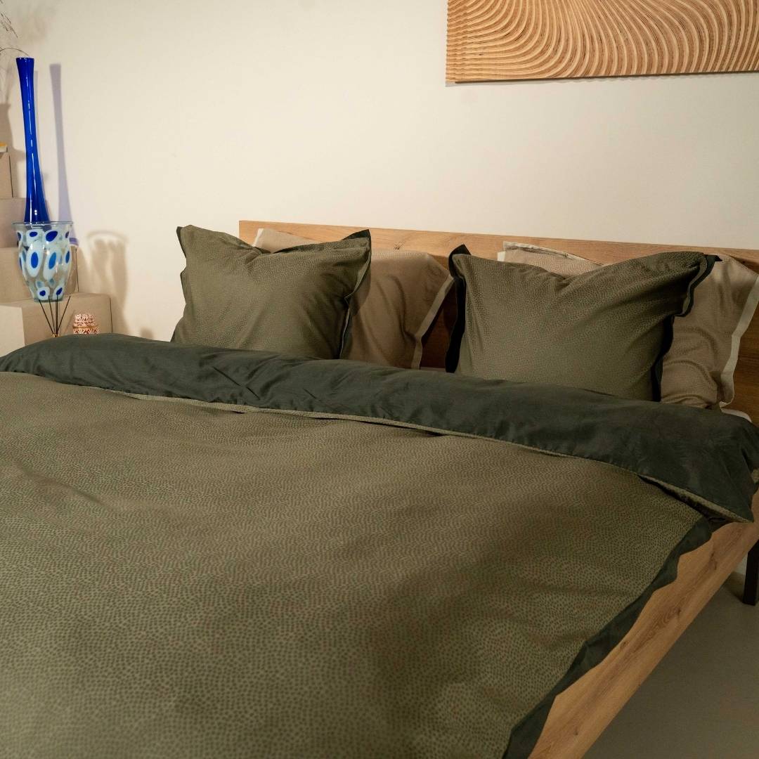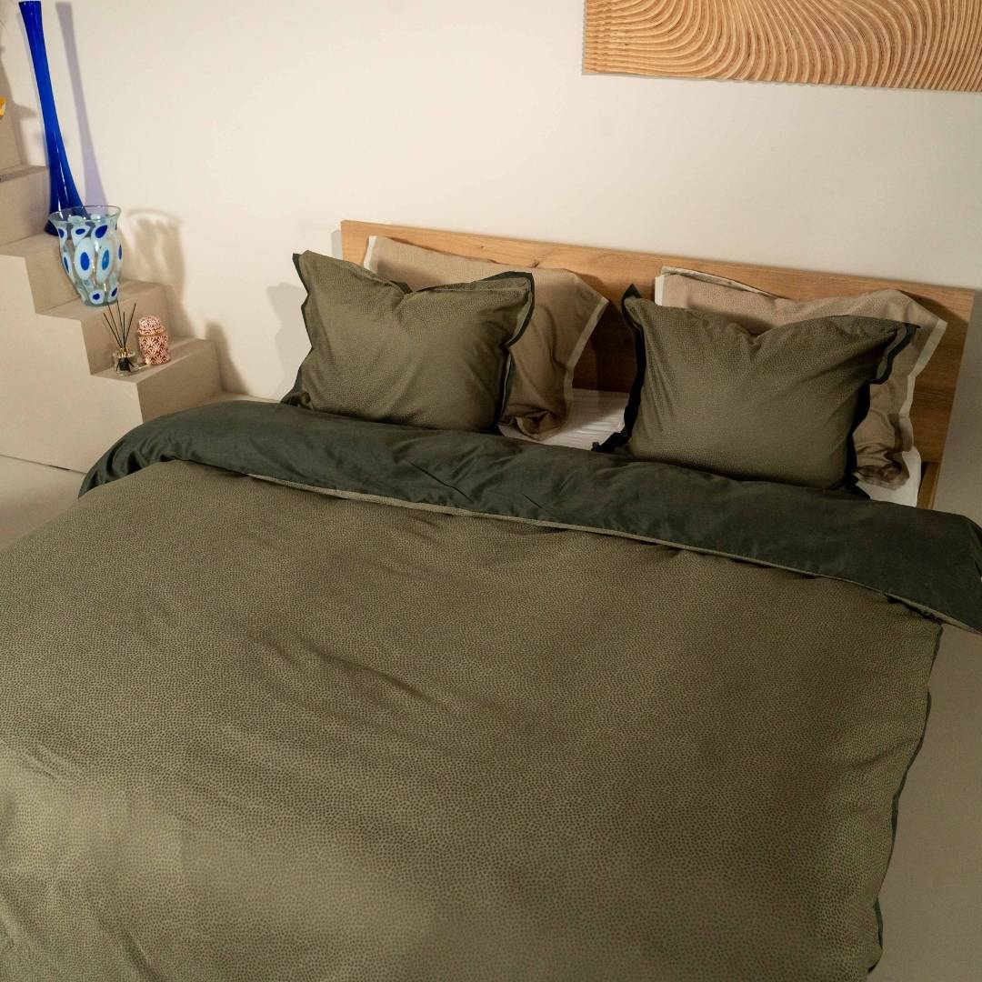 Creëer een natuurlijke en luxe sfeer met het Kayori Rauso Groen dekbedovertrek. Het overtrek heeft een luxe uitstraling door de elegante jacquard geweven stippen. De rijke groentint in combinatie met het dot-dessin geven een gevoel van comfort en stijl. De kussenslopen hebben een dubbele Oxfordrand voor een extra stijlvol contrast. De achterzijde is effen, wat zorgt voor een strakke en frisse uitstraling en extra mogelijkheden met het opmaken van jouw bed.