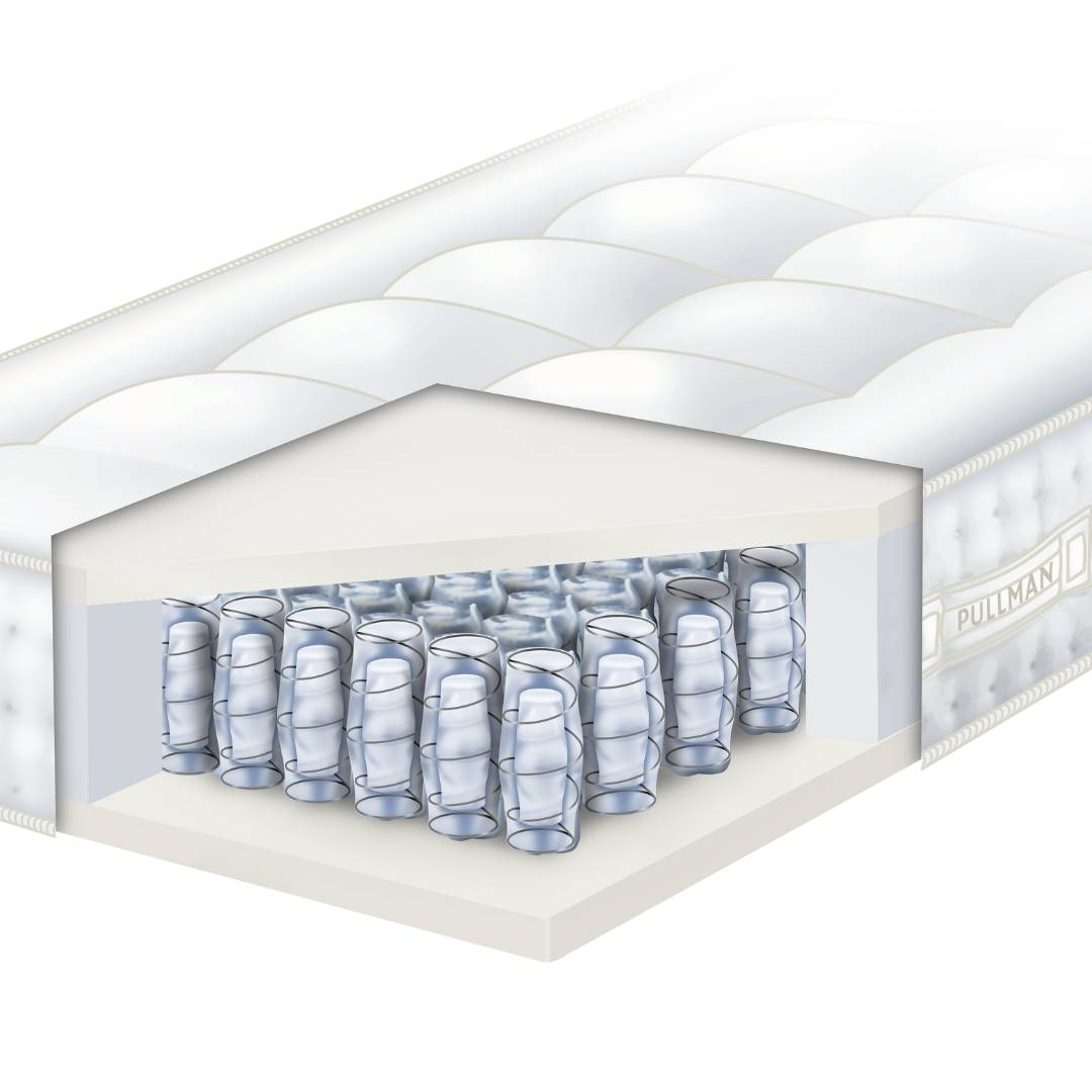 Op een Pullman Goldline matras slaap jij op de beste materialen. Dit merk je elke nacht opnieuw weer, of je hem gisteren hebt gekocht of er al jaren op ligt. De Pullman Goldline matrassen zijn er voor iedereen. Of je nu houdt van een stevig of weldadig zacht matras. Er is altijd een Pullman Goldline matras dat past bij jouw wensen. Alle Pullman Goldline matrassen hebben een Inside Pocket vereninterieur. Deze verenkern past zich perfect aan naar de vorm van jouw lichaam. Elke veer heeft een grote en een kleine veer, waarbij de kleine veer in de grote is geplaatst. De buitenste veer past zich snel en soepel aan naar jouw lichaamscontour. De kleine veer zorgt voor meer ondersteuning op de plekken die jouw lichaam nodig heeft.