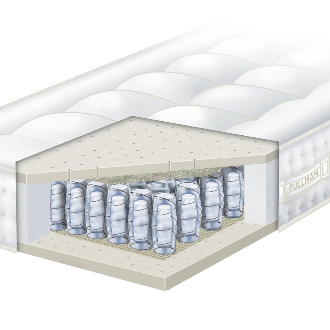 Op een Pullman Goldline matras slaap jij op de beste materialen. Dit merk je elke nacht opnieuw weer, of je hem gisteren hebt gekocht of er al jaren op ligt. De Pullman Goldline matrassen zijn er voor iedereen. Of je nu houdt van een stevig of weldadig zacht matras. Er is altijd een Pullman Goldline matras dat past bij jouw wensen. Alle Pullman Goldline matrassen hebben een Inside Pocket vereninterieur. Deze verenkern past zich perfect aan naar de vorm van jouw lichaam. Elke veer heeft een grote en een kleine veer, waarbij de kleine veer in de grote is geplaatst. De buitenste veer past zich snel en soepel aan naar jouw lichaamscontour. De kleine veer zorgt voor meer ondersteuning op de plekken die jouw lichaam nodig heeft.
