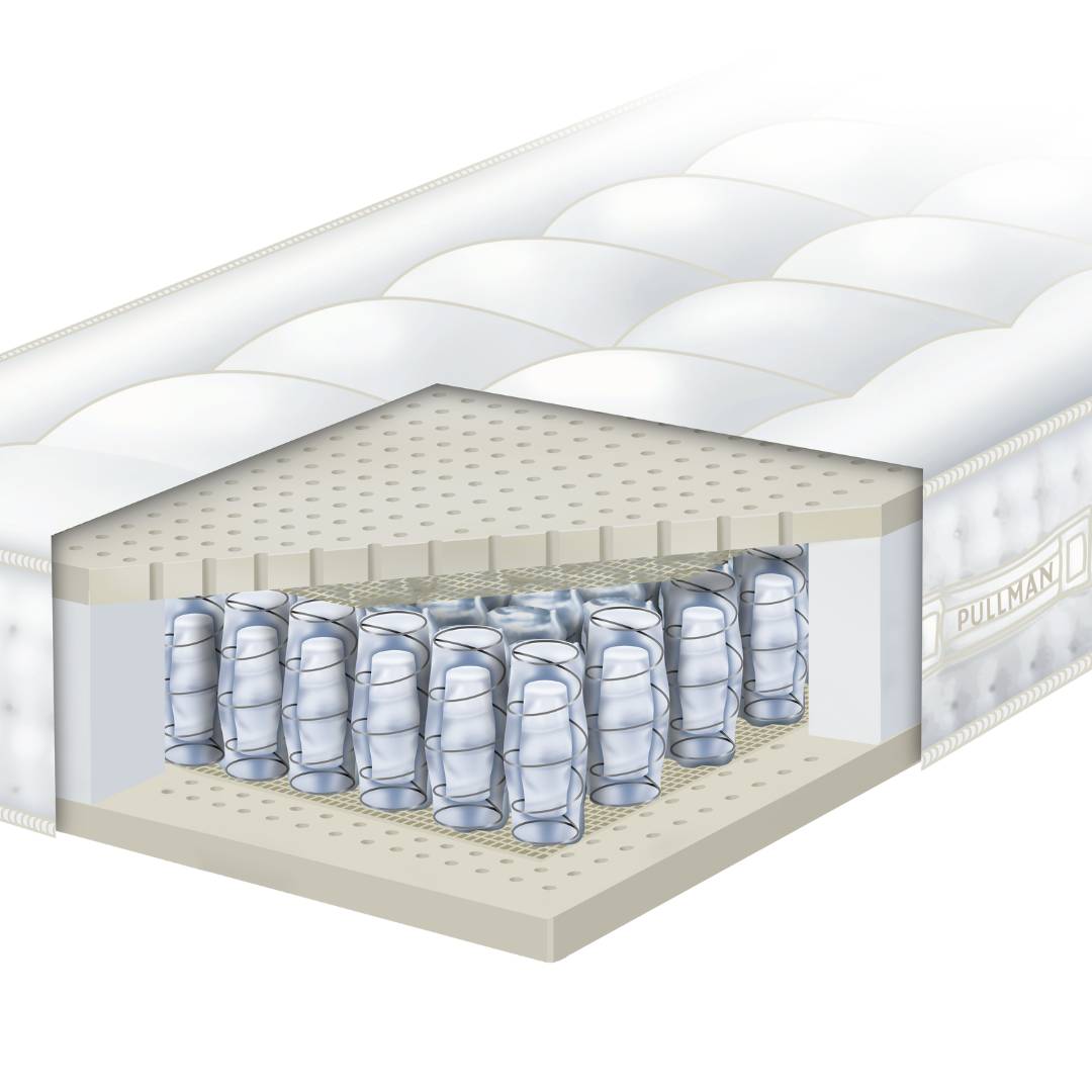 Op een Pullman Goldline matras slaap jij op de beste materialen. Dit merk je elke nacht opnieuw weer, of je hem gisteren hebt gekocht of er al jaren op ligt. De Pullman Goldline matrassen zijn er voor iedereen. Of je nu houdt van een stevig of weldadig zacht matras. Er is altijd een Pullman Goldline matras dat past bij jouw wensen. Alle Pullman Goldline matrassen hebben een Inside Pocket vereninterieur. Deze verenkern past zich perfect aan naar de vorm van jouw lichaam. Elke veer heeft een grote en een kleine veer, waarbij de kleine veer in de grote is geplaatst. De buitenste veer past zich snel en soepel aan naar jouw lichaamscontour. De kleine veer zorgt voor meer ondersteuning op de plekken die jouw lichaam nodig heeft.