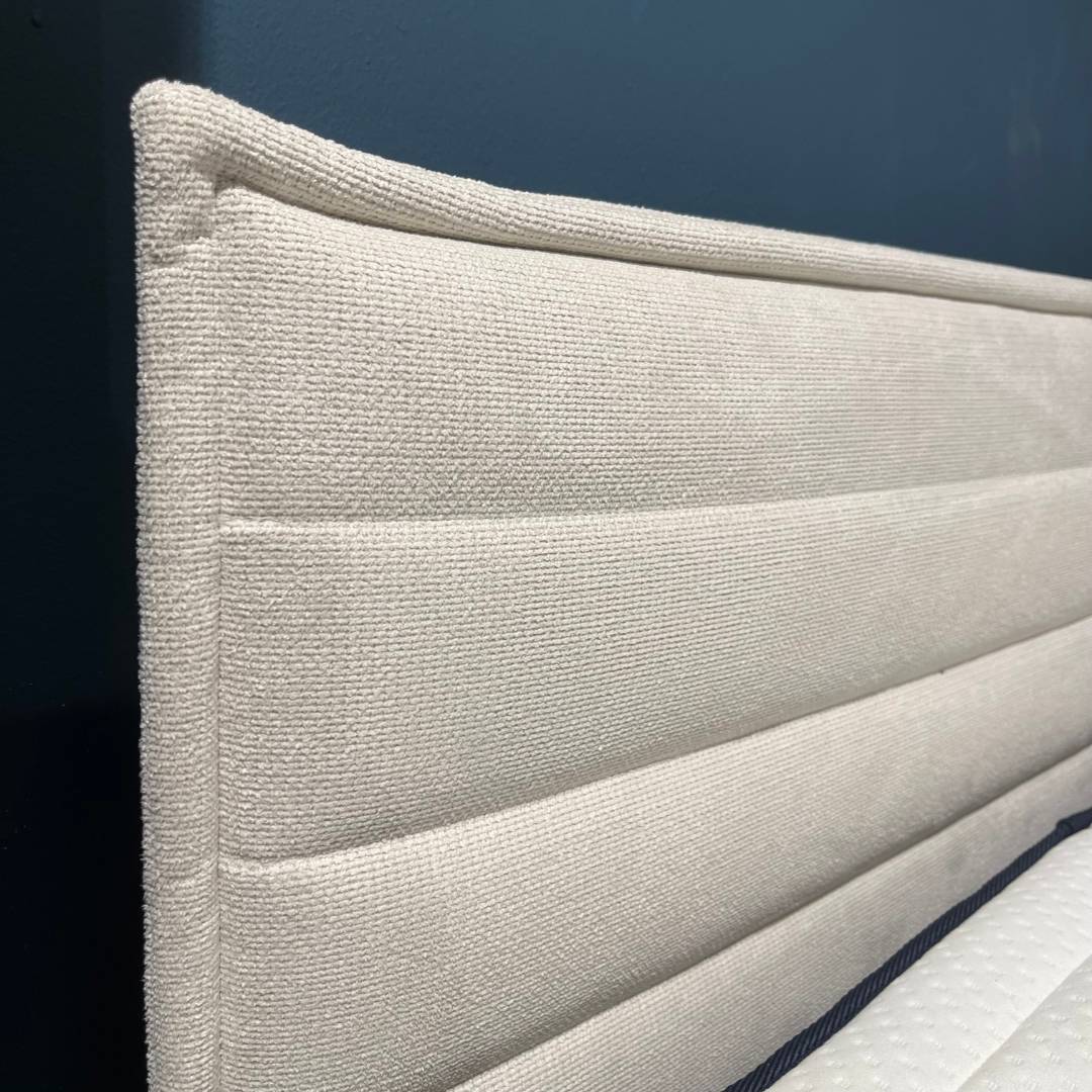Het Auping Original frame is Sand Beige, de verhogingspootjes Sand Beige. Het Stitch hoofdbord is gestoffeerd in Maze 02 Cream.