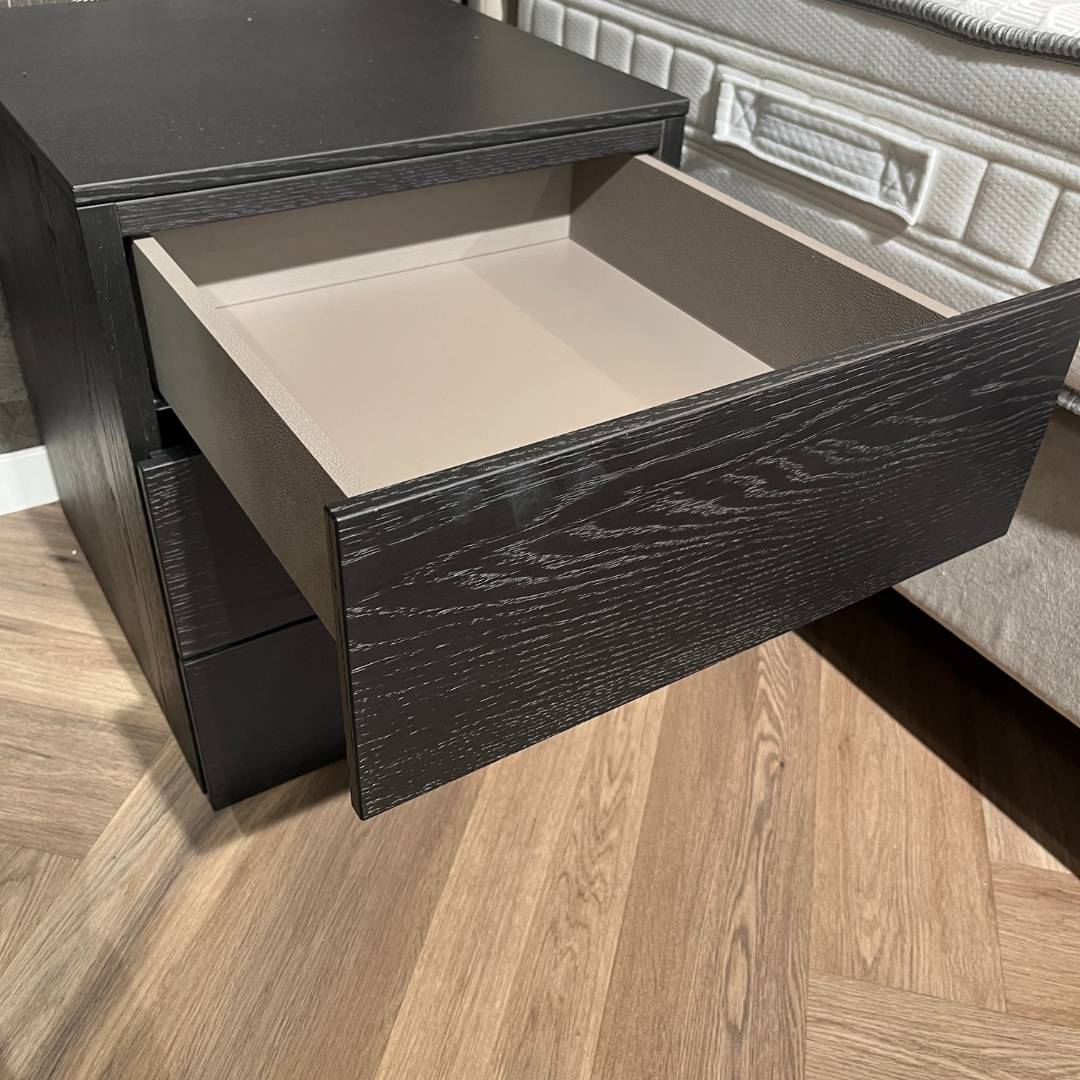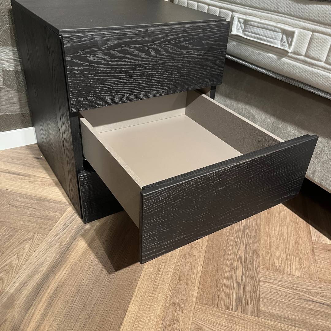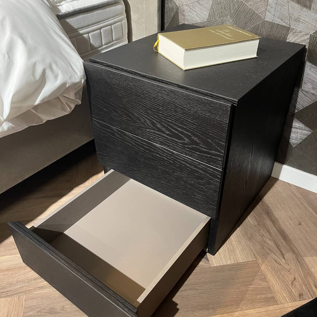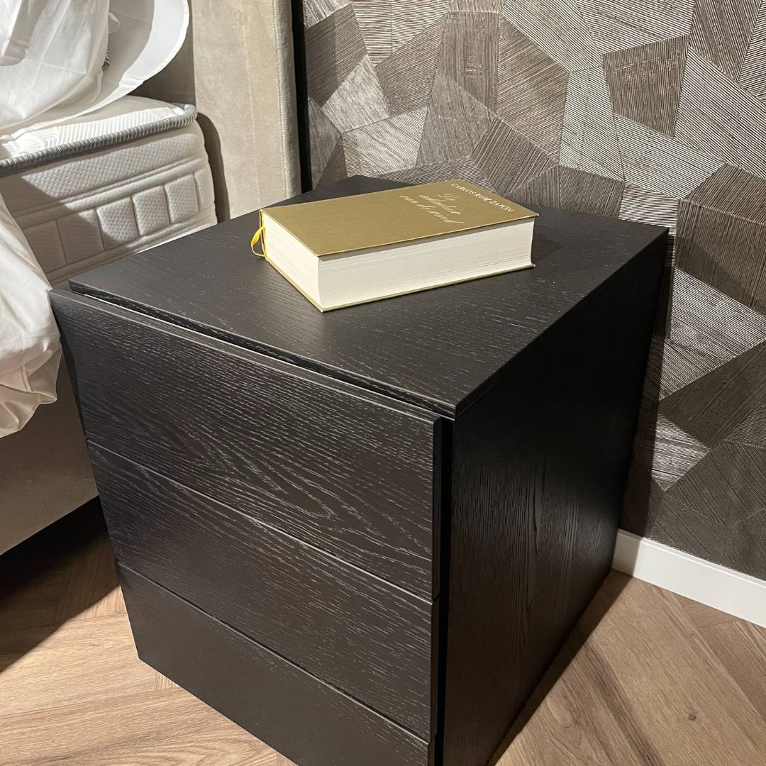 Novamobili biedt alles voor een complete slaapkamer. Vanwege vernieuwingen in onze showroom, bieden wij extra voordelig deze Novamobili Easy nachtkastjes aan. Strak, stijlvol en praktisch – het Easy nachtkastje van Novamobili is een prachtig voorbeeld van Italiaans design. Uitgevoerd in de luxe kleur Rovere Carbone, met een subtiele houtstructuur, past dit nachtkastje moeiteloos in zowel moderne als klassieke slaapkamers.