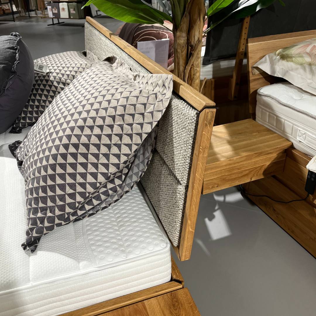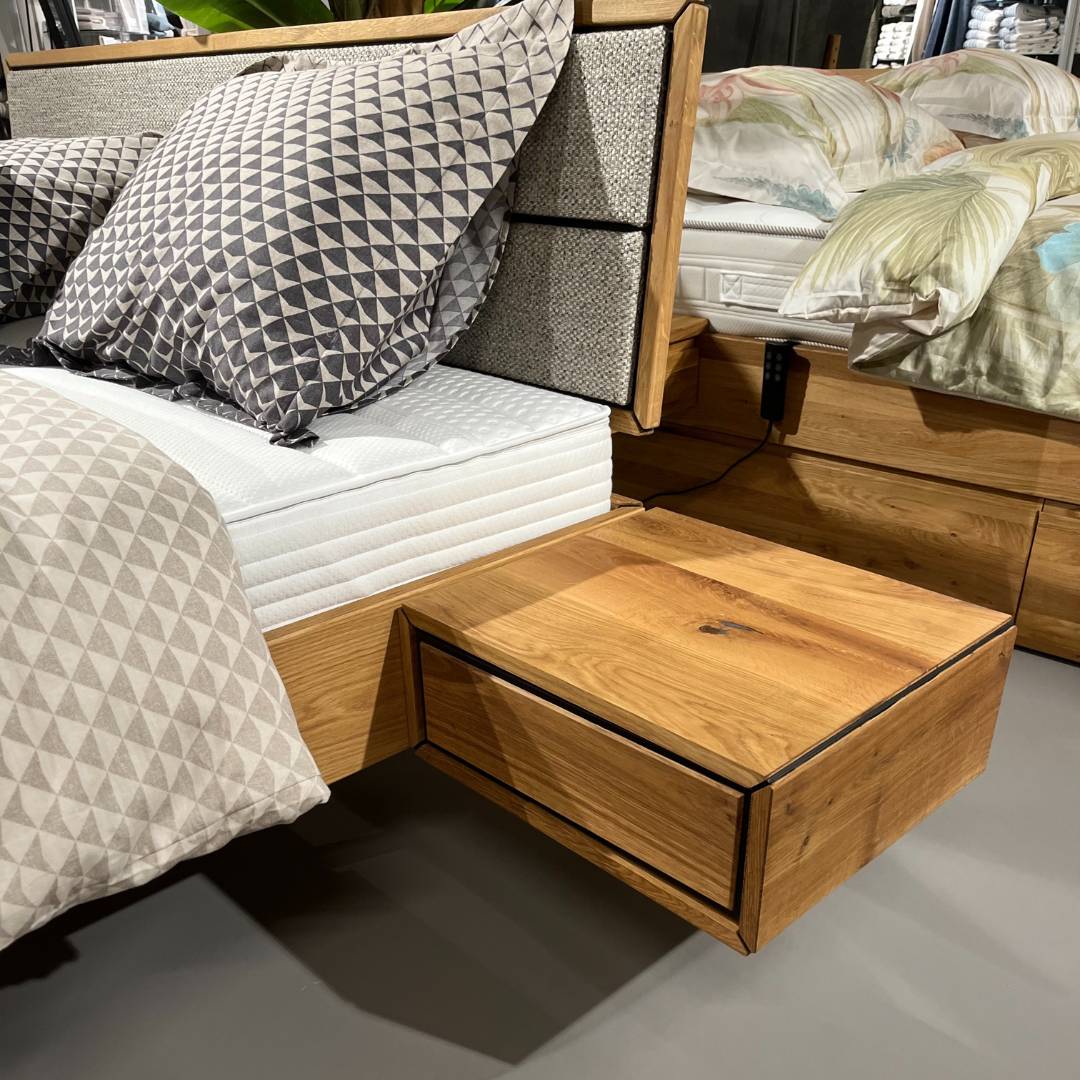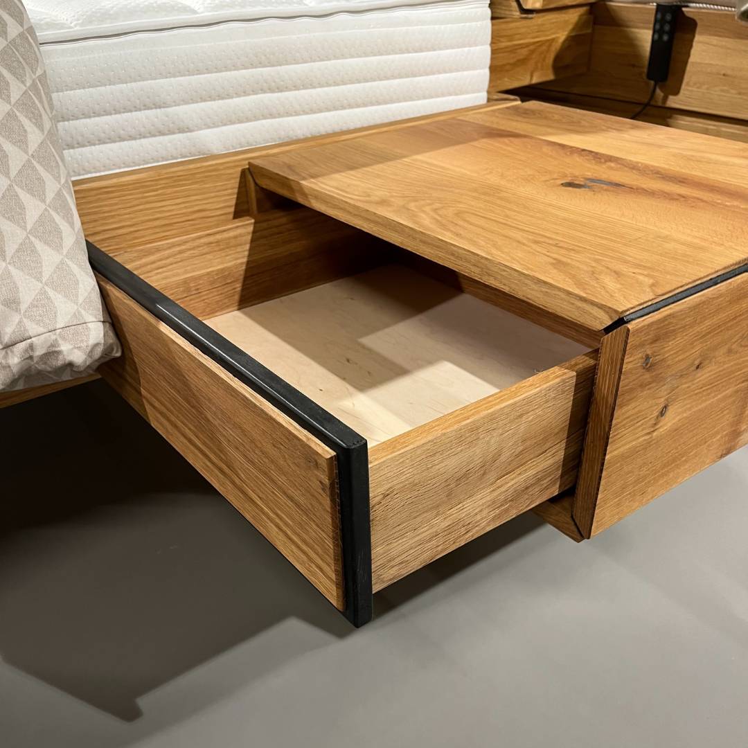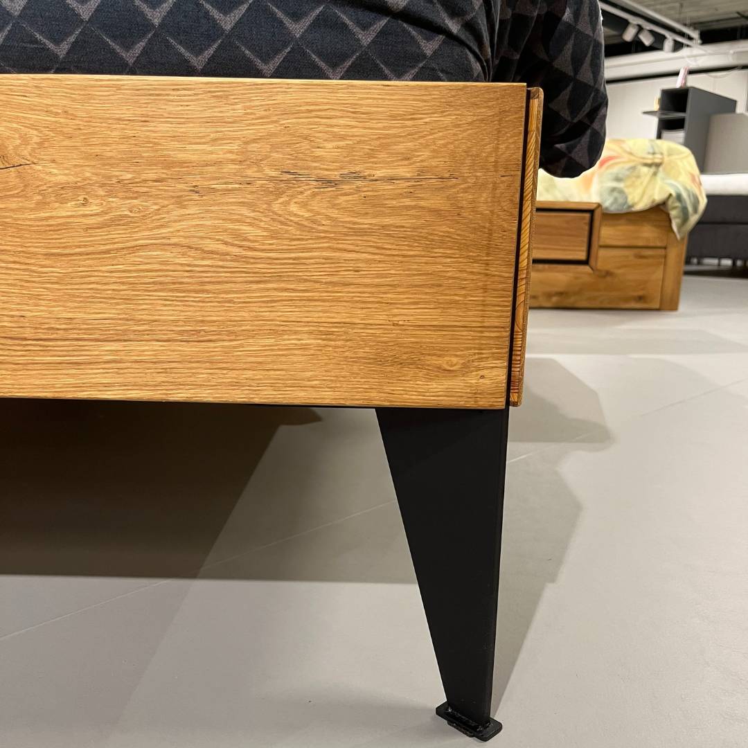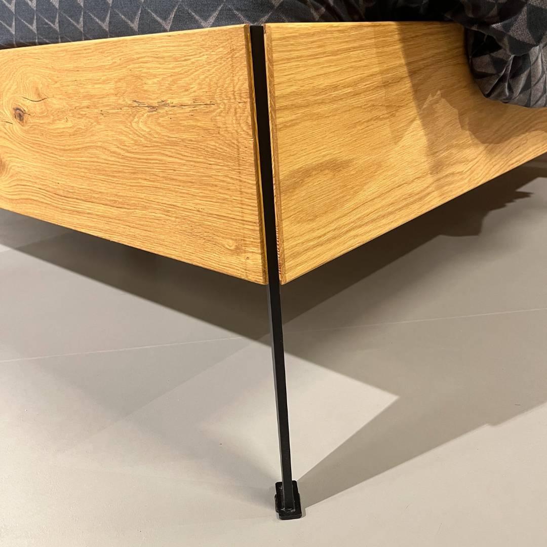 In onze showroom maken wij ruimte voor nieuwe bedden. Om die reden bieden wij het Tjornbo ledikant Frederik nu extra voordelig aan. De Frederik is een eiken ledikant met tussen de zijden een strakke zwarte poot. Het gestoffeerde hoofdbord is omkaderd met het eiken hout. Zo worden het hoofdbord en bed een geheel. De nachtkastjes worden zwevend gemonteerd aan de bedzijden. Ook hierin zie je met de zwarte rand om de lade heen. Het ledikant Frederik is een combinatie tussen stoere zwarte details en een warme eiken uitstraling.