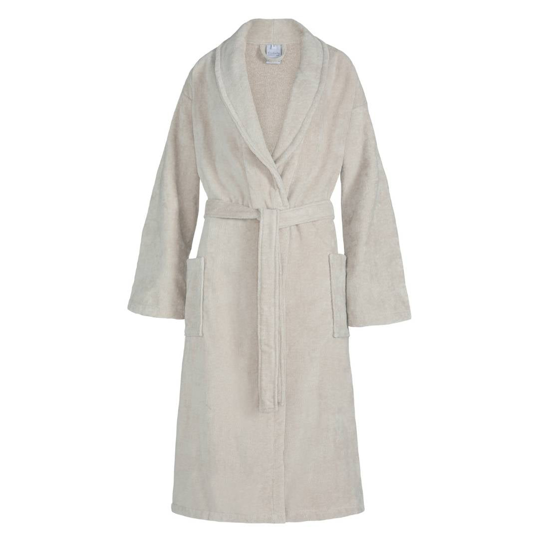 Ervaar ultieme ontspanning met de Vandyck Prestige Uni badjas in de kleur Cream Tan. Deze luxe badjas heeft een tijdloze uitstraling gecombineerd met een hoogwaardige afwerking en een zacht gevoel. De zachte stof is van 100% katoen met een dikte van 360 gram/2.