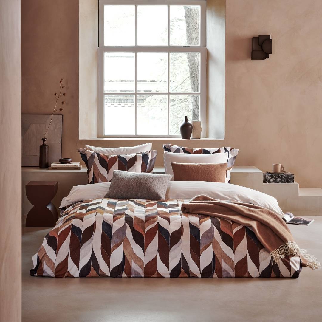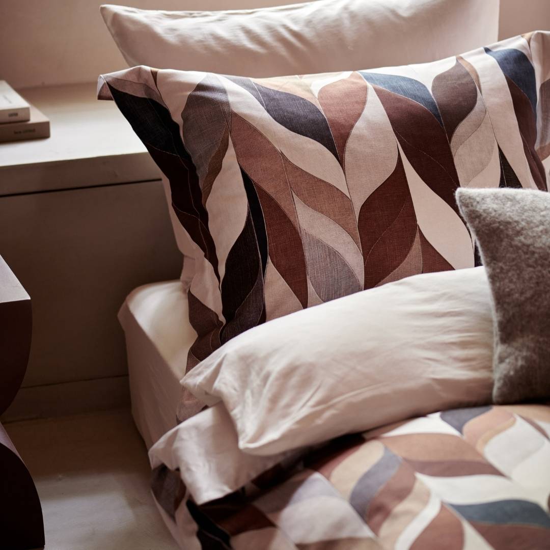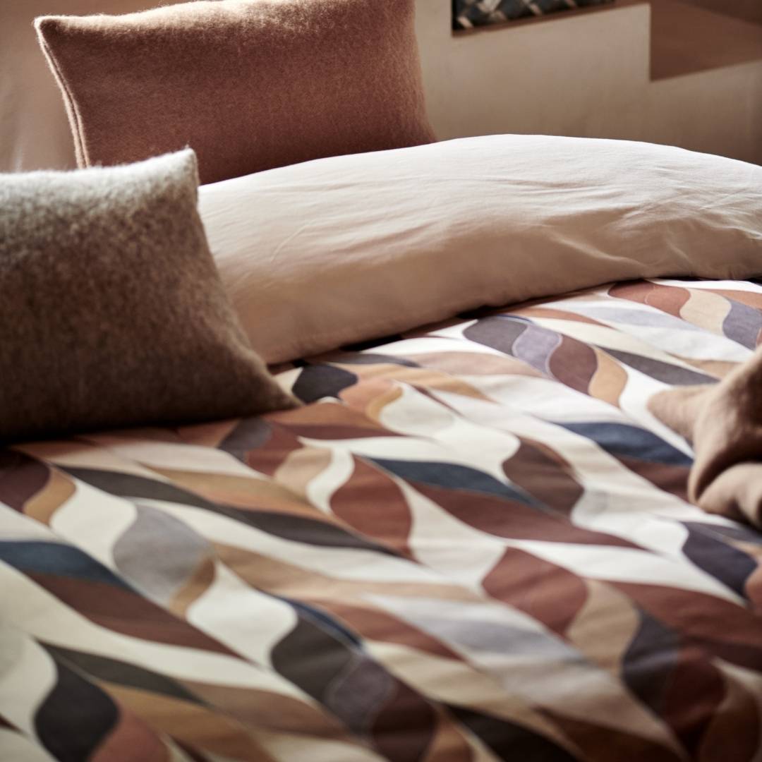 Het Vandyck dekbedovertrek Herring Multi geeft een leuke draai aan het klassieke visgraatmotief. Het dessin heeft vormen van blaadjes die zo zijn geplaatst als een visgraat. De bruine, blauwe en lichte tinten geven een vrolijk en kleurrijk geheel. De achterzijde is effen naturel van kleur. Hiermee kan je spelen voor een rustige of speelse uitstraling met het opmaken. Het overtrek is gemaakt van zachte katoensatijn voor een comfortabele nachtrust. Combineer dit overtrek ook met een van de Vandyck plaids of sierkussens.