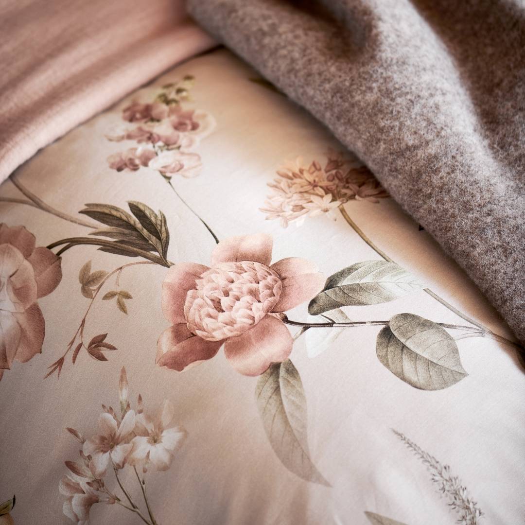 Breng de romantiek in je slaapkamer met het Vandyck dekbedovertrek Rosewood Charm Linen. Het dessin speelt met bloemen op een rustige linen ondergrond. De zachte roze kleuren combineren goed met de rustige ondergrond. De achterkant van dit overtrek is effen linen Door deze om te slaan bij het opmaken kan je een speels of juist rustig effect creëren in de slaapkamer. Het overtrek is gemaakt van zachte katoensatijn voor een comfortabele nachtrust. Combineer dit overtrek ook met een van de Vandyck plaids of sierkussens.
