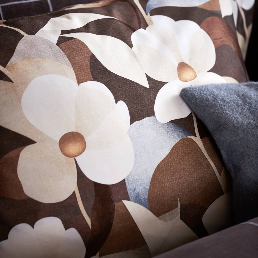 Geef je slaapkamer een luxe uitstraling met het Vandyck dekbedovertrek Velvet Luxe Multi. De lichte bloemen op de donkere bruine ondergrond zorgt voor een abstract dessin. De bloemen zijn in wit met lichtbruine en blauwe tinten. De achterkant van dit overtrek is effen naturel. Door deze om te slaan bij het opmaken kan je een speels of juist rustig effect creëren in de slaapkamer. Het overtrek is gemaakt van zachte katoensatijn voor een comfortabele nachtrust. Combineer dit overtrek ook met een van de Vandyck plaids of sierkussens.